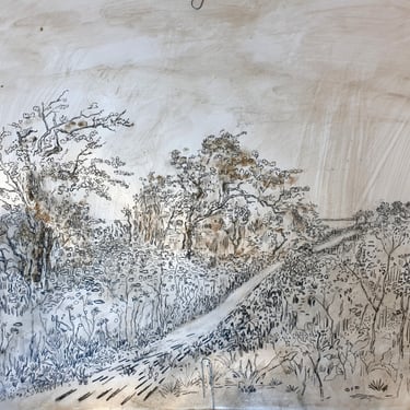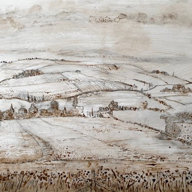 Jacob draws in the fields everyday to aid his work as a painter. His drawings are large scale and 85 cm x 60cm, in either pencil or reed pen with ink.